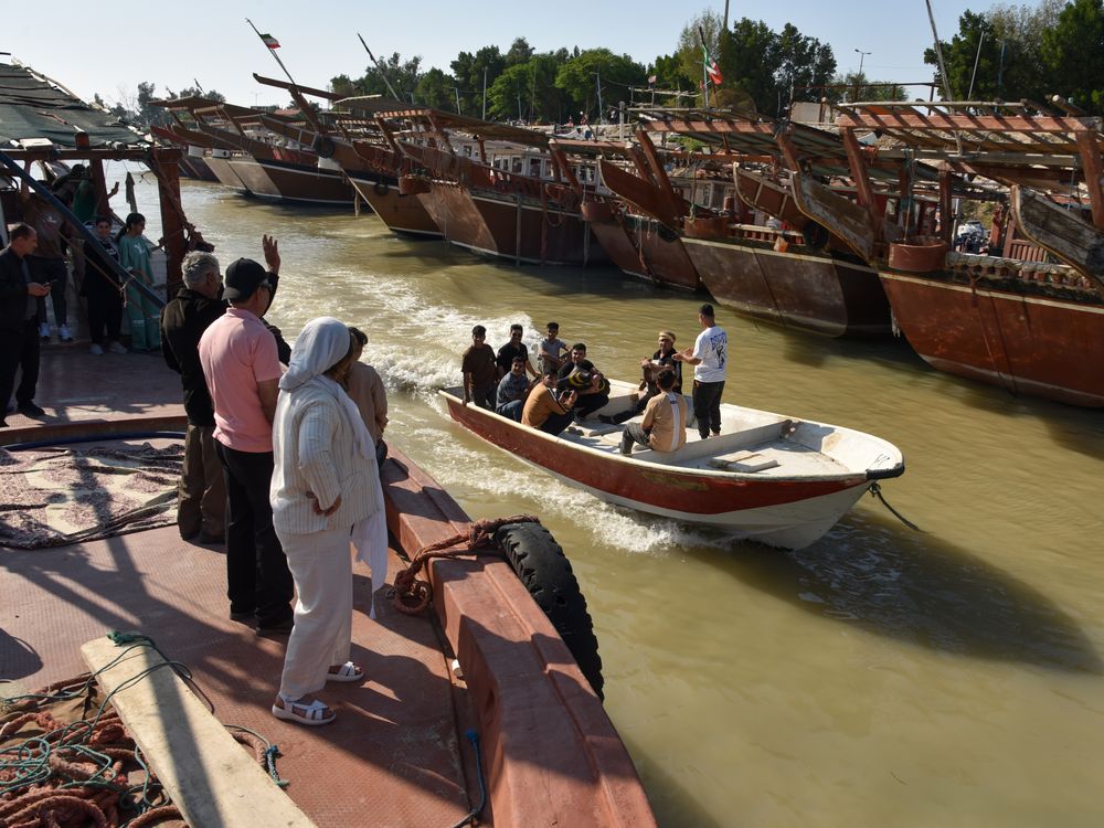 This is the Zohreh River in Khuzestan Province, where many small boats and southern barges travel and are being repaired. We were on a family barge to visit and watch the Zohreh River on Eid, when a small boat with a few passengers passed by us, dancing and singing. A river full of good feelings.