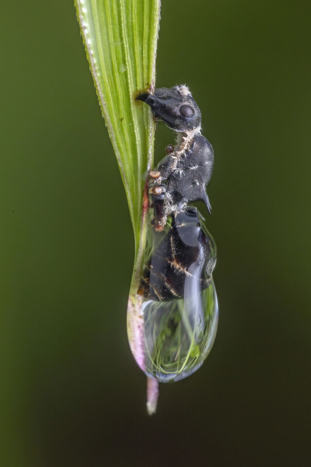 Zombie-ant fungus infects ants and alters its behavior. Infected ants will climb to a high point and use their mandibles to attach themselves to a leaf. The fungus will eventually kill the ant and burst through its body releasing spores into the air to infect next batch of victims.